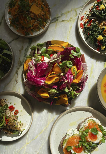 Emily’s creative, flavour-focused cooking draws on a unique blend of cultural influences, resulting in truly unusual and frequently thrilling food. She curates vibrant, colourful menus, inspired by the conviviality of street food markets. Her food is generous, heartfelt, and beautiful.